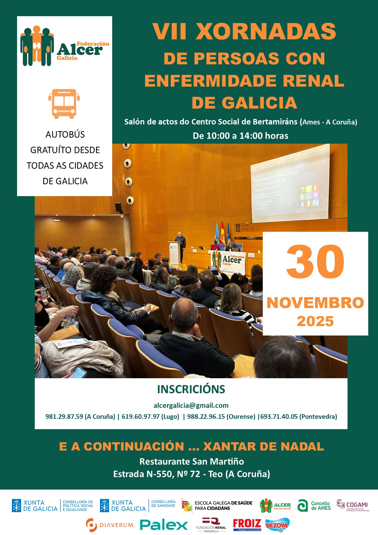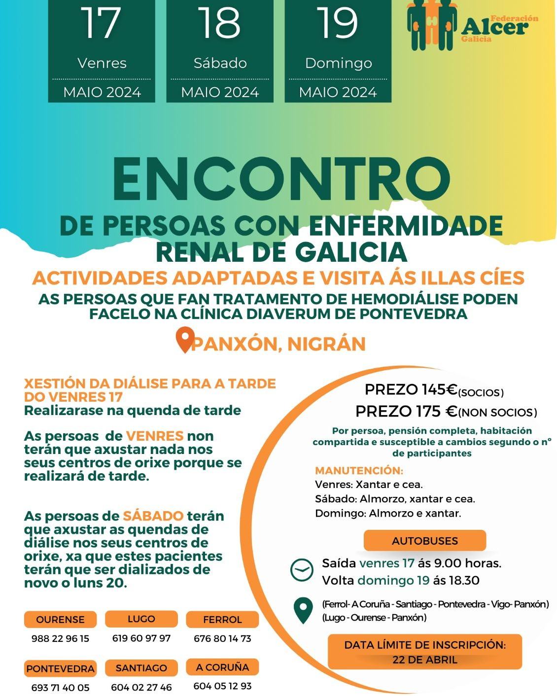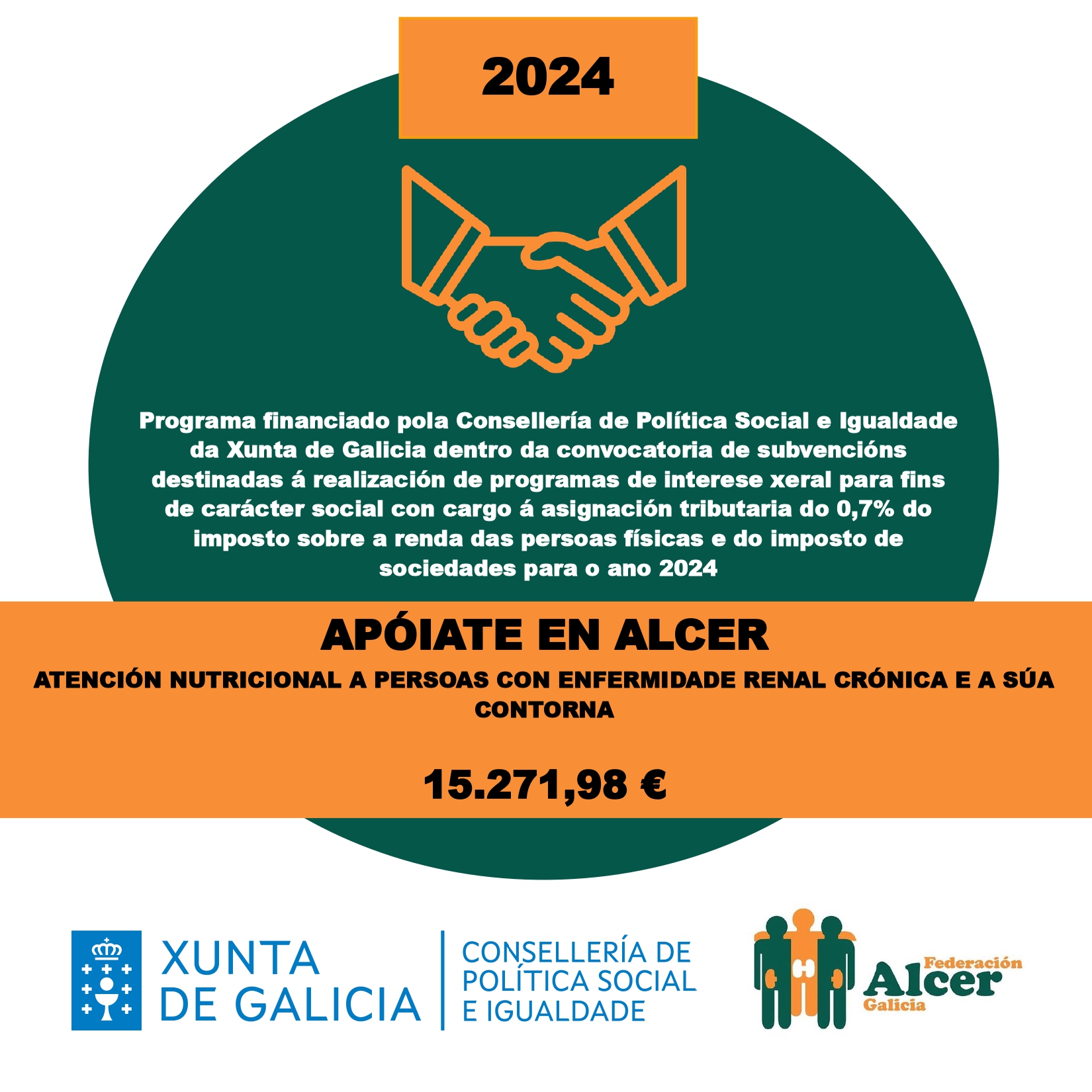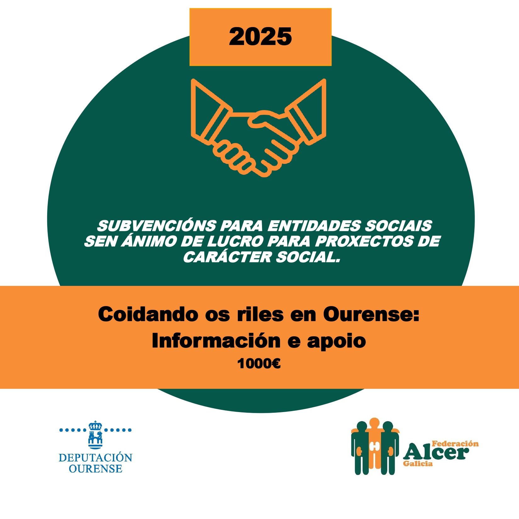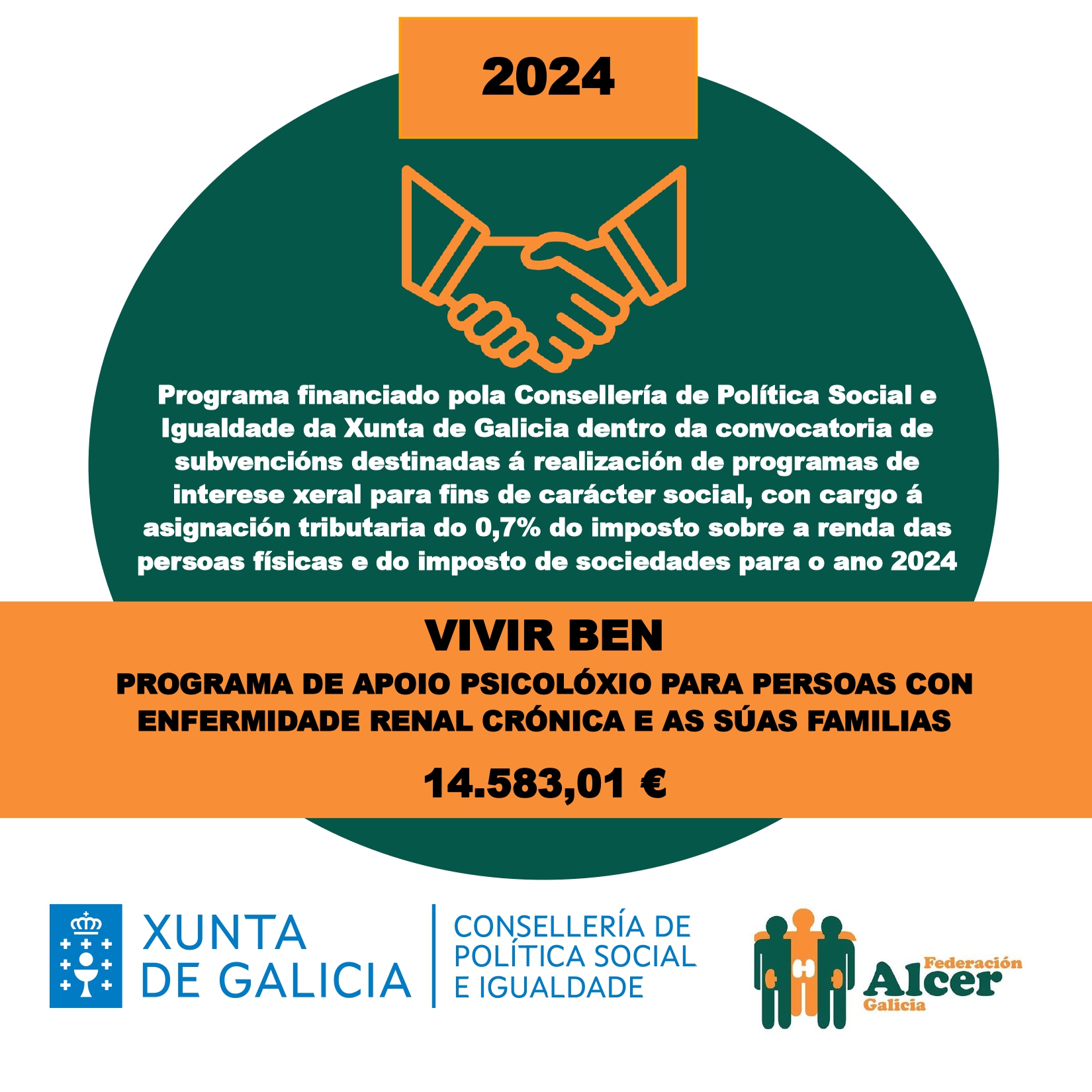 Financiamento do programa <<SINERXIAS>> Financiamento do programa ”Vivir Ben” VII XORNADAS DE PERSOAS CON ENFERMIDADE RENAL DE GALICIA FINANCIAMENTO DA DEPUTACIÓN DE OURENSE FINANCIAMENTO AO PROGRAMA DE VOLUNTARIADO FINANCIAMENTO DO PROGRAMA “VIVIR BEN” FINANCIAMENTO DO PROGRAMA “SINERXIAS” SUBVENCIÓN DA DEPUTACIÓN DA CORUÑA AO PROGRAMA “COME CON ALCER” SUBVENCIÓN AO PROGRAMA “APÓIATE EN ALCER” SUBVENCIÓN DA CONSELLERÍA DE CULTURA, LINGUA E XUVENTUDE DA XUNTA DE GALICIA VIDEO EXPLICATIVO DE NUTRICIÓN EN ERCA VIDEO EXPLICATIVO DE NUTRICIÓN EN DIÁLISE Convenio coa Consellería de Política Social e Igualdade Encontro de persoas con enfermidade renal de Galicia 2024 Cofinanciación cos fondos IRPF do Programa Apóiate en Alcer 2023 Cofinanciación cos fondos IRPF do Programa Sinerxias 2023 Subvención da Deputación da Coruña A sexualidade das persoas con enfermidade renal crónica a debate onte en Lugo Alcer realiza formación en prevención do suicidio entre o seu equipo técnico de Galicia Obradoiro de xestión de estrés e ansiedade en Ourense Curso sobre a Discapacidade e a Dependencia na Enfermidade Renal Encontro entre persoas con enfermidade renal en 📍Panxón, Nigrán. Encontro de familias medro en Panxón